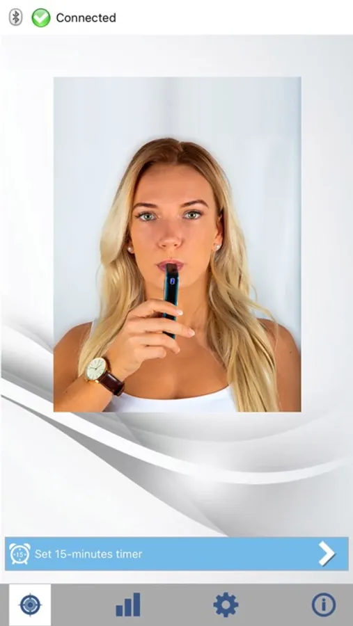• Start test as instructed on the smartphone screen, blow through the installed mouthpiece, then BAC (blood alcohol content) value will be displayed in a second.*