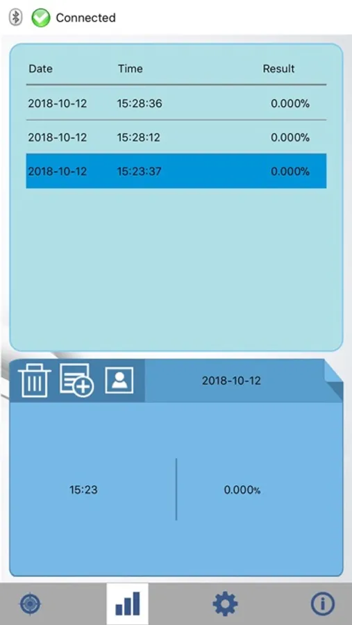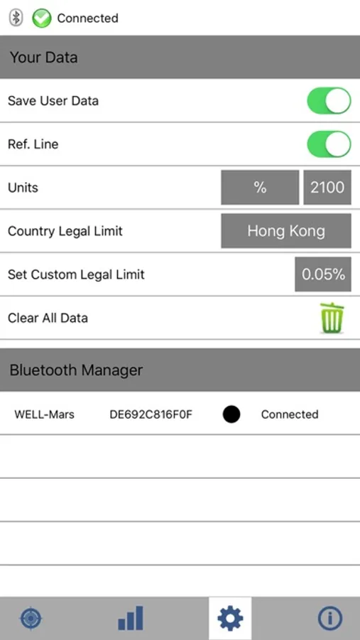 • BAC test data is logged and plotted as a graph. Sequential tests over time allow users picture how their body react to alcohol after consumption.