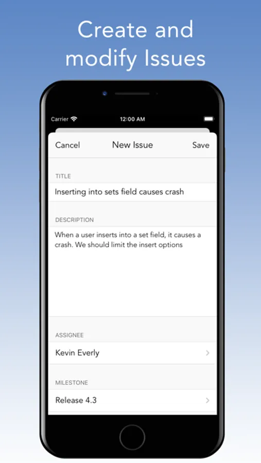 Let's face it. We've all gone through the embarrassment of demoing your cool new app to a friend just for it to crash. With Gitlab Issues, you can quickly submit a ticket directly to your Gitlab project rather than trying to write an explanation in your notes app and remember to move it to Gitlab later.