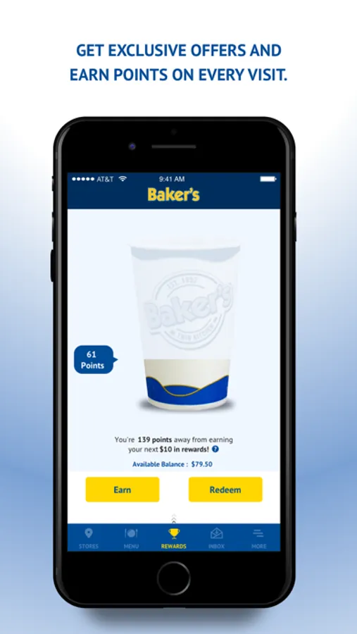Download the Baker’s Drive-Thru Rewards App to earn points for free food and drinks! Plus, get exclusive offers and more! Sign-up today and complete your first purchase to receive $5 off your next purchase.  Use the App to order ahead or have it delivered.  Baker’s is just a few clicks away!