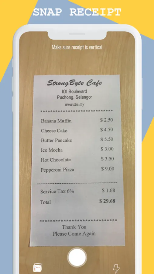 • Launch SplitNow and take a photo of your receipt.