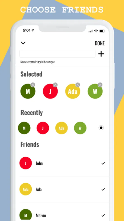 • Choose your friends from history list.