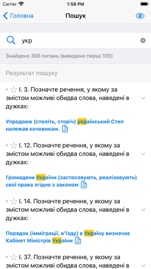 - Зручний пошук та перегляд відповідей без проходження тестування;