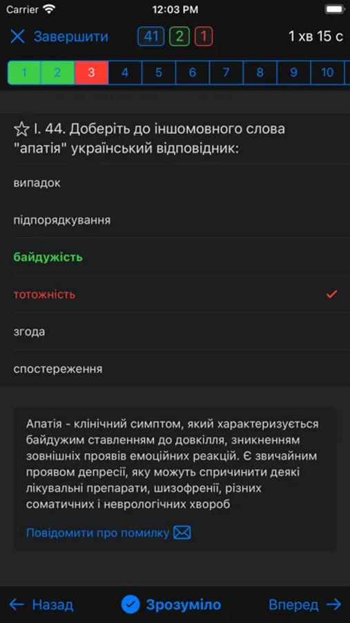 - Робота над помилками (тестування по питанням, в яких вами були допущені помилки);