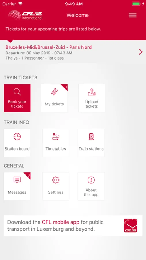 With the new CFL International app, book your trip easily through Europe. Travel and discover several hundred destinations in Europe. It has never been easier! Plan your stopover and book your international ticket directly with your app. Stay always informed in real time about your train trip.