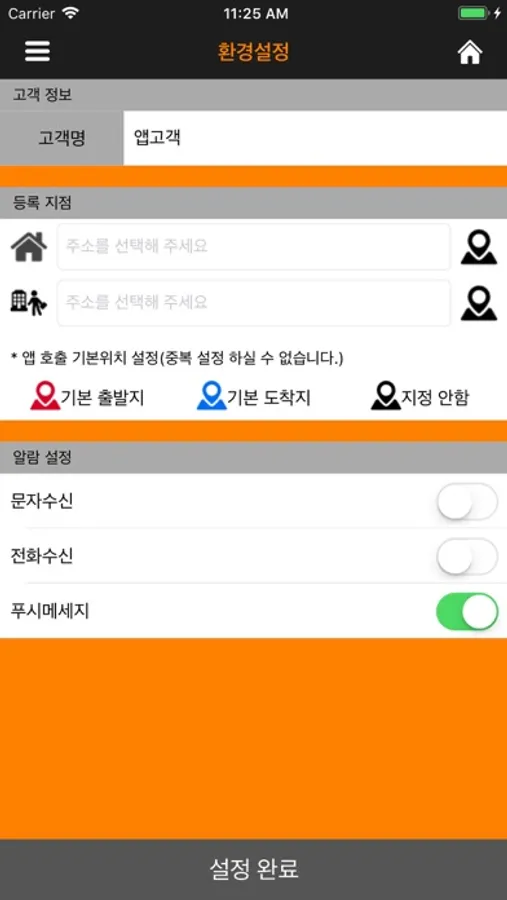 사용자의 위치를 받거나 지도 직접 선택, 저장된 위치를 이용하여 현재 사용자의 위치에 버튼 한번 클릭으로 대리운전 신청이 가능합니다.