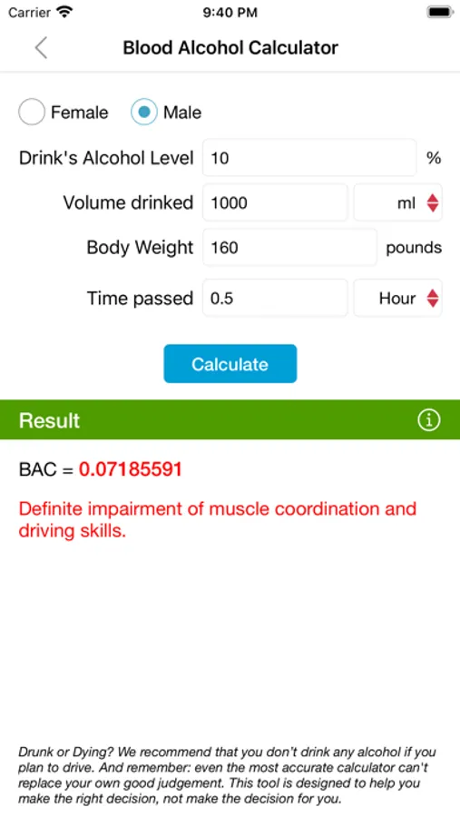 12. Blood Alcohol Content Calculator (BAC): Anticipate your blood alcohol content (BAC) based on how much you expect to drink.
