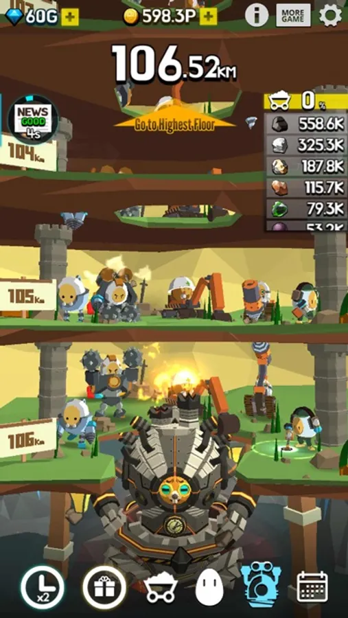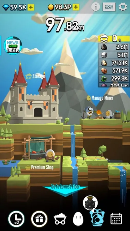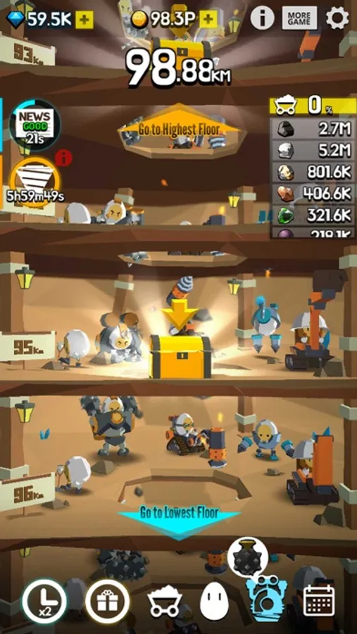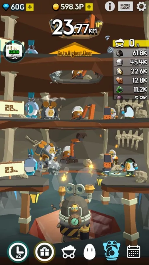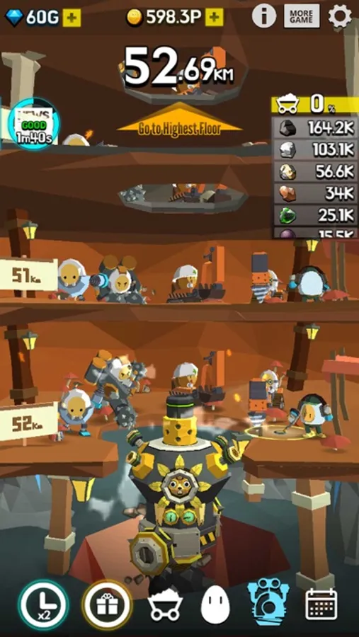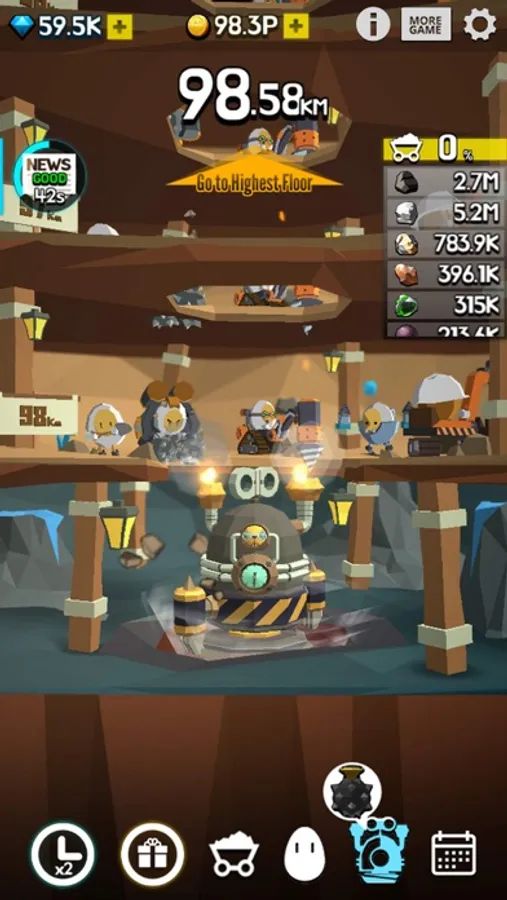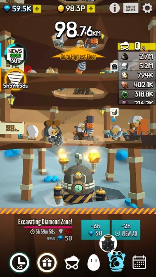 Mine diverse gems and minerals with a powerful excavator and cute miners.