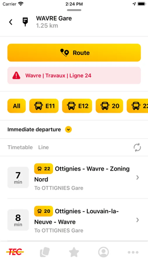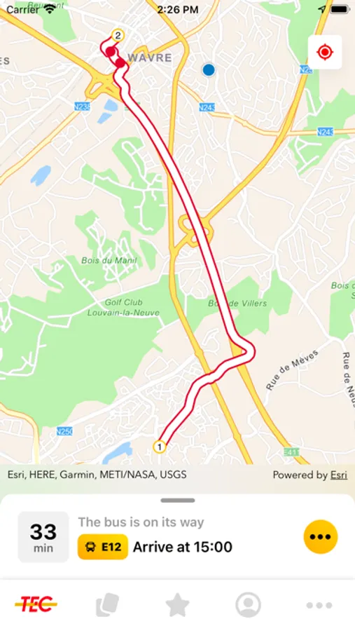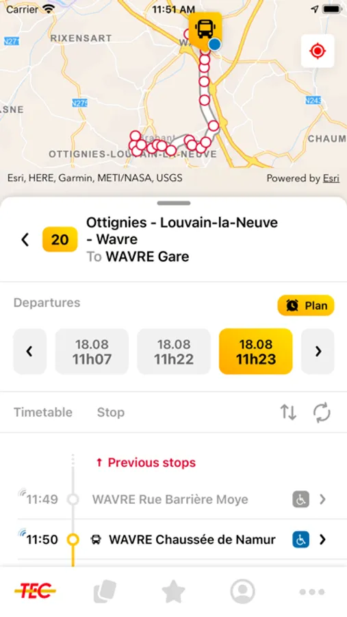 Check the details and timetable for TEC lines and stops to find out where the next bus is.