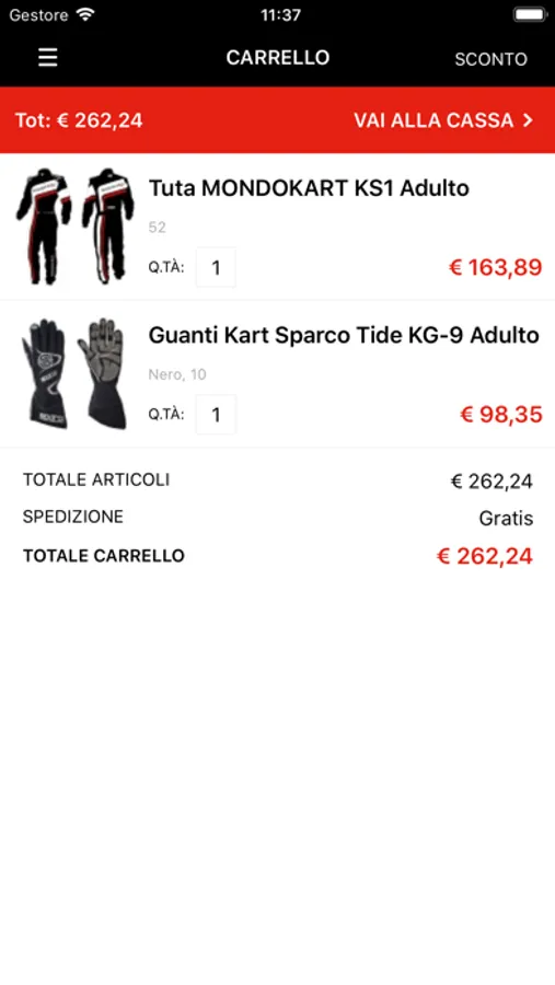 Entra e acquista dall'APP del più grande negozio di kart e ricambi del Mondo! Troverai tutto delli principali Brand del settore: TONYKART - OTK - CRG - BIRELART - EASYKART - TM RACING - VORTEX - IAME - ALPINESTARS - SPARCO - OMP - ARAI - BMB - ROTAX - LKE LENZOKART - COMER TOPKART - MODENA ENGINES - PAVESI - DELLORTO - IBEA - TRYTON - NEW-LINE - ELF - MOTUL - XERAMIC - FIMO - SILKOLENE - VEGA - BRIDGESTONE - DUNLOP - MG TYRES - LECONT - INTREPID - PCR - ZANARDI - SODIKART - FORMULA K - EVOKART - METEOR PISTON - AIM MYCHRON - ALFANO PRO - KZ10 - KZ10B - KZ10C - KOSMIC - IAME X30 - ROTAX MAX CHALLENGE.