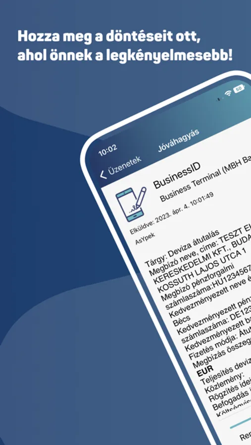 Az MBH Bank BusinessID Alkalmazás segítségével biztonságosan aláírhatja vagy elutasíthatja: