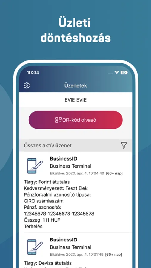 • Az MBH Bank BusinessID Alkalmazáson aláírt megbízások és információkérések részleteinek megtekintése