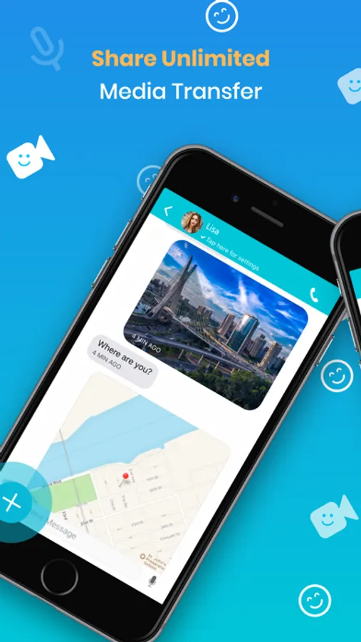 • Share Text Messages, Photos and videos Messages, documents (pdf, doc, xls, etc.) and Locations.