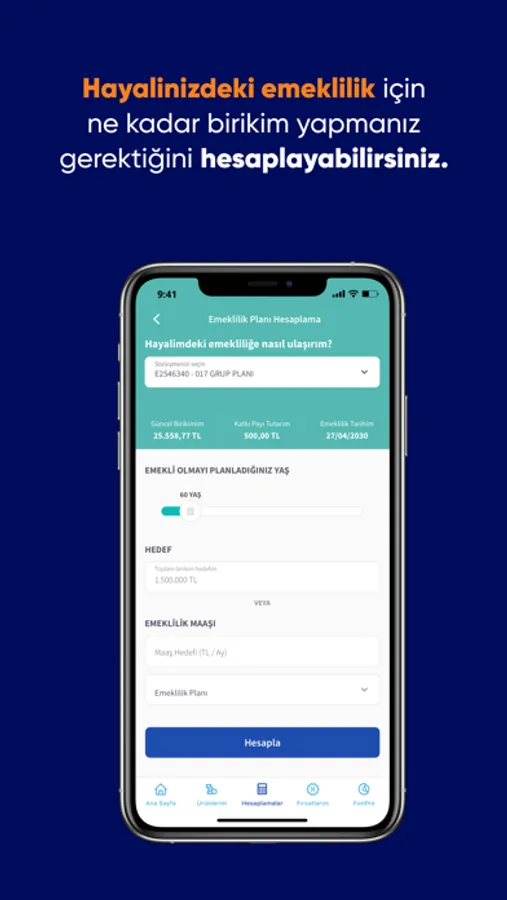 Hayalinizdeki emeklilik için ne kadar birikim yapmanız gerektiğini ve hayat ürünlerindeki %15’e varan vergi avantajını AgeSA Mobil ile hesaplayabilirsiniz.