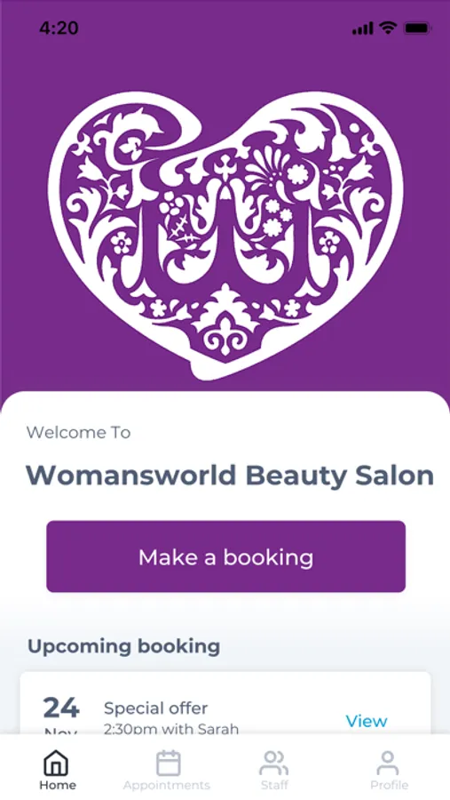 The Womansworld Beauty Salon app makes booking your appointments and managing your loyalty points even easier. You're just a few taps away from feeling good and looking great!