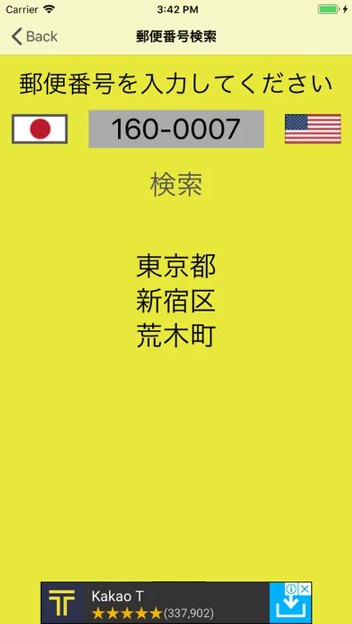 郵便番号を検索するためのアプリです。インターネットを通して情報を探すので、大量のデータベースはありません。