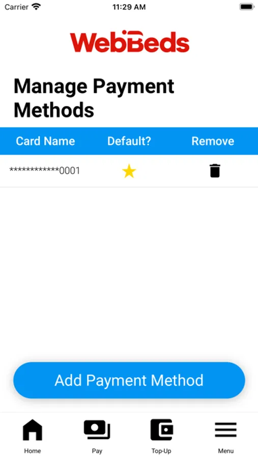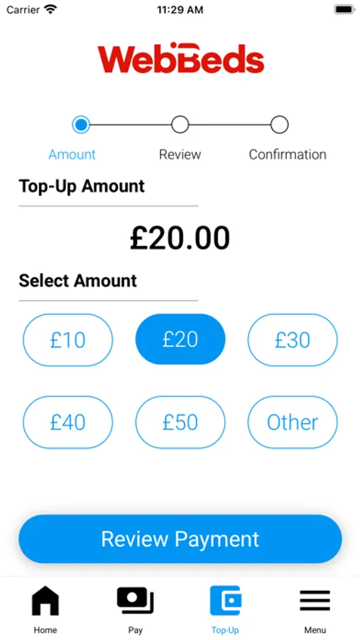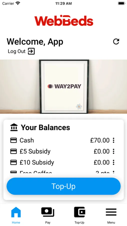 • Perform cashless purchases in the WebBeds canteen