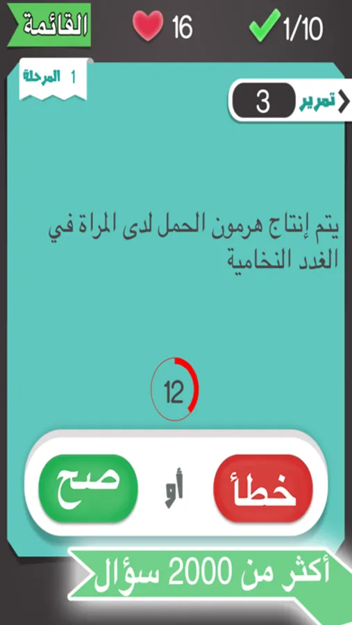 اجب عن الاسئلة بصح او خطأ بسرعة وانتقل بين المراحل
