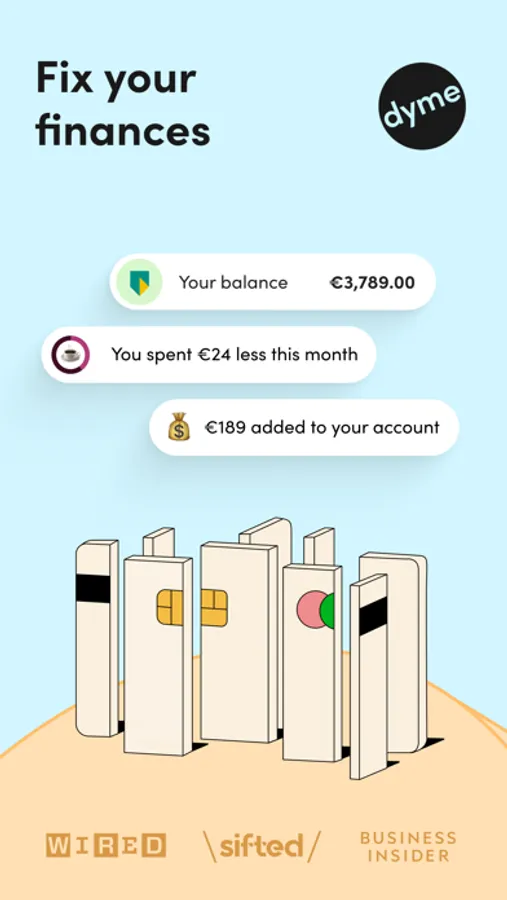 • Dyme operates under official PSD2-license and is supervised by the Dutch Central Bank, the Netherlands Authority for the Financial Markets (AFM) and the Netherlands Authority for Personal Data (AP)