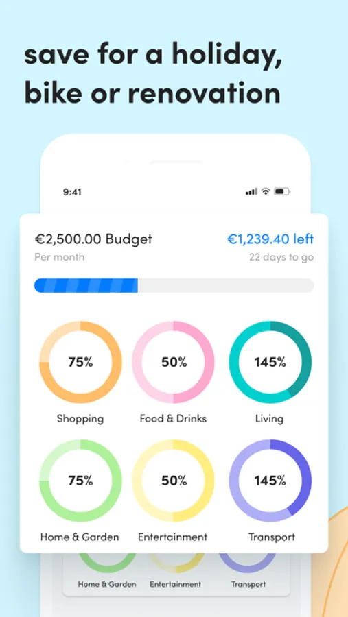 • Dyme makes your finances transparent with clear overviews and graphs. So you can immediately see where your money is going and what’s coming in.