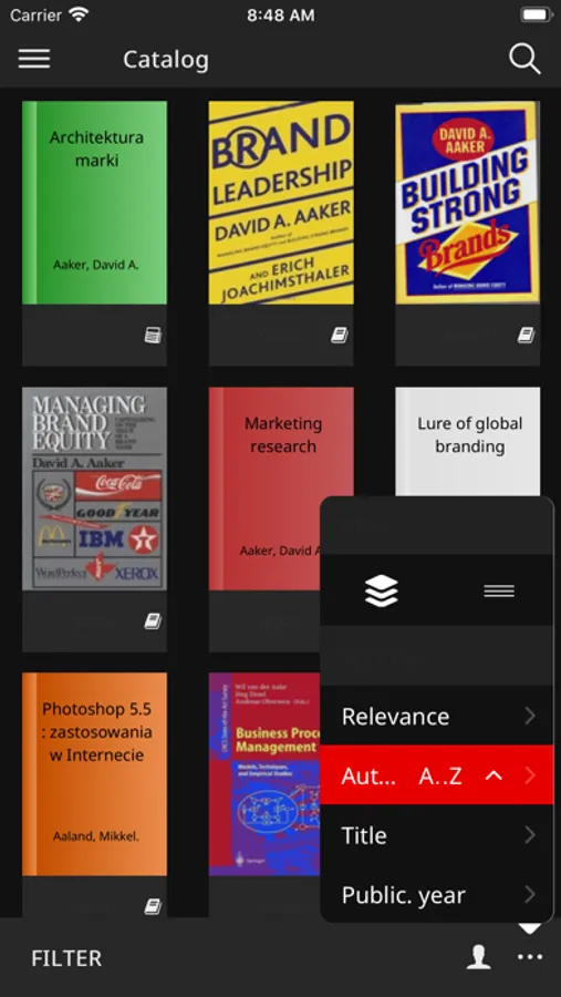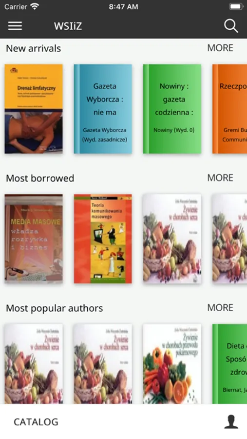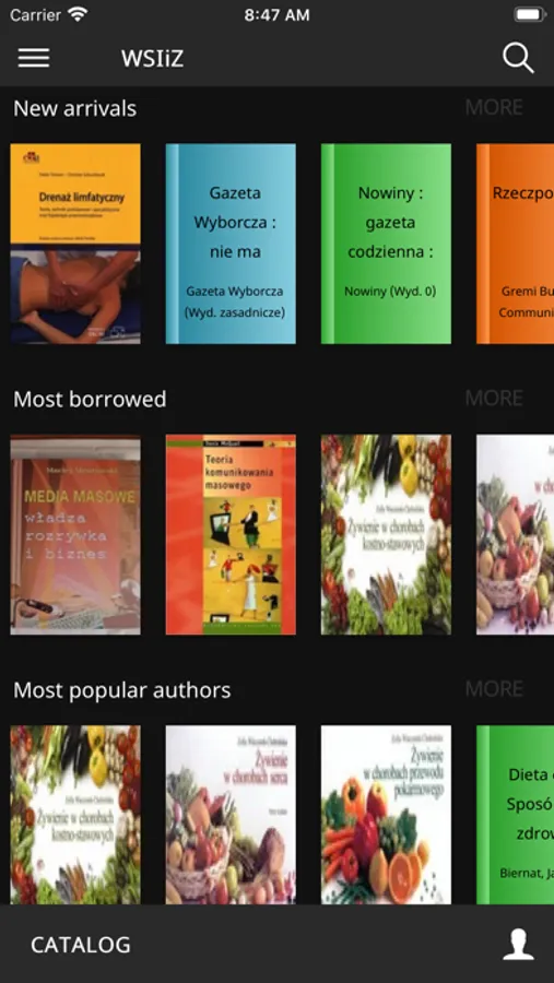 Aplikacja w pełni obsługuje katalog biblioteki oraz konto czytelnika biblioteki.