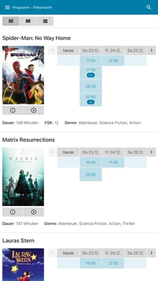 Hier kaufst Du in unter einer Minute Kinotickets für Deinen Lieblingsfilm. Schnell, sicher, einfach und ohne Anstehen an der Kinokasse. Einfach aus dem aktuellen Kinoprogramm Deinen Film buchen und Du erhältst die Tickets einfach & bequem als E-Ticket auf Dein Smartphone und an Deine E-Mail-Adresse.