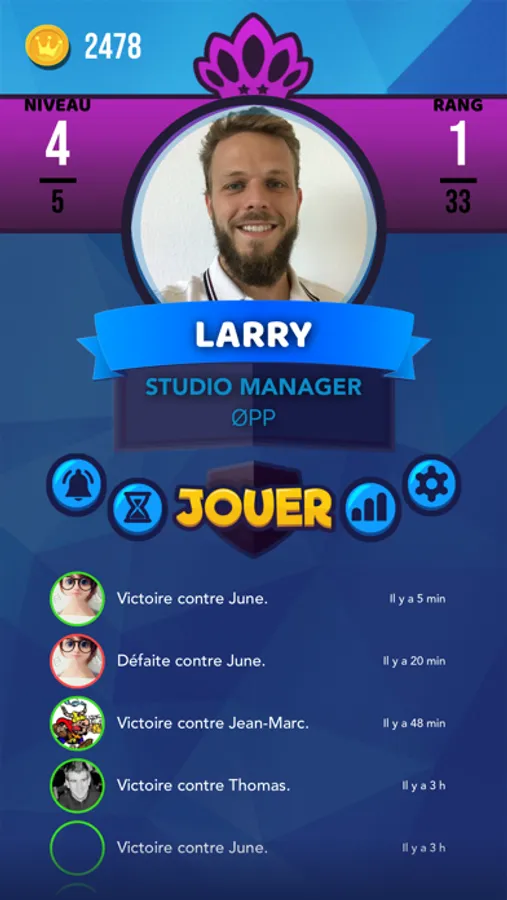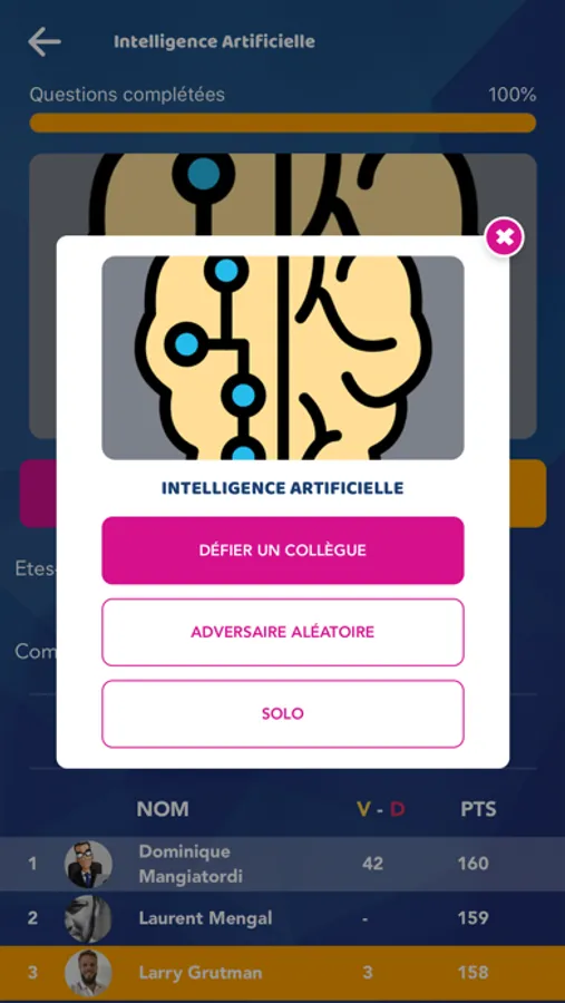 Vos salariés peuvent s'affronter à travers des centaines de questions réalisées pour votre entreprise.