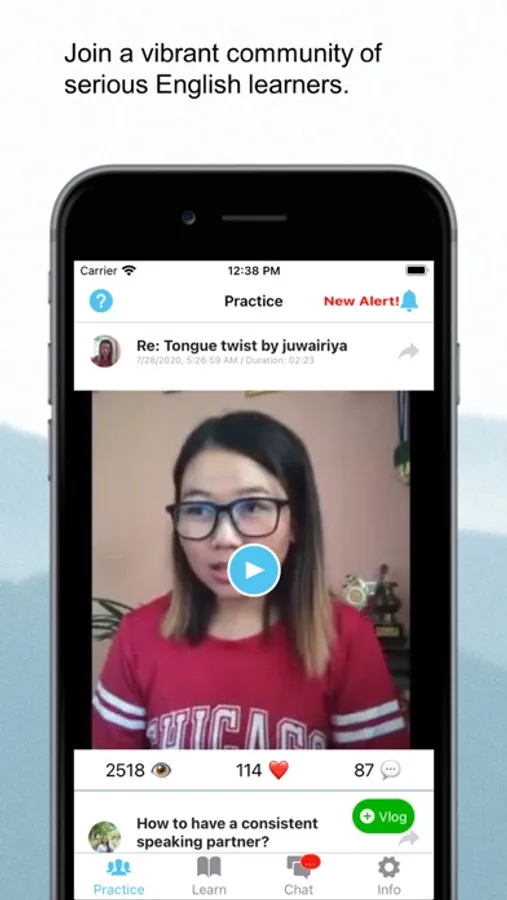You will also have plenty of opportunities to interact with serious English learners around the world by sending voice messages to one another and creating vlogs in English. Our speech recognition server will turn each voice message into text to help you see where you can improve upon.