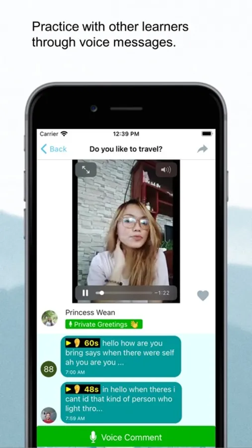 1. Watch. You start by watching self-introduction videos and sending private greetings to those who you want to practice with.