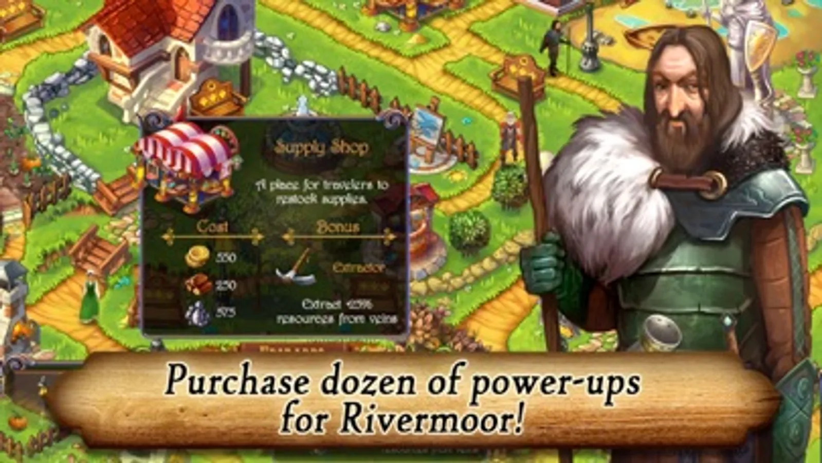 Match 3 or more gold, stone, and wood pieces to earn those resources. The larger the match, the more resources you receive. Use your resources to help rebuild the town of Rivermoor. Rivermoor is an old-time medieval village that was abandoned during the war and has a remaining population of only 3. They desperately need an extra hand to earn enough to pay their dues to the royal King!