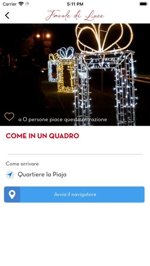 L’app grazie alla localizzazione ti propone le luminarie più vicine ma anche le attività ricettive e i monumenti più belli della città.