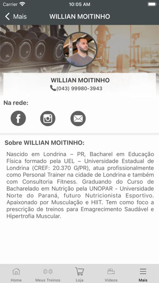 Olá! Muito prazer! Meu nome é Willian Moitinho, sou Personal Trainer no Brasil e quero te ajudar prescrevendo seus exercícios para você fazer na academia e atingir seus objetivos e resultados!