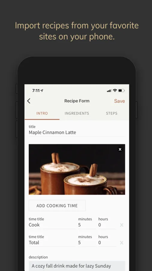 Build your own cookbooks by cuisine, by diet, or by whatever you desire.