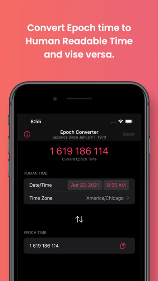 Epoch Time Converter is a simple app that converts epoch time to traditional time and vise versa. You can also utilize this app to view live second by second epoch time.