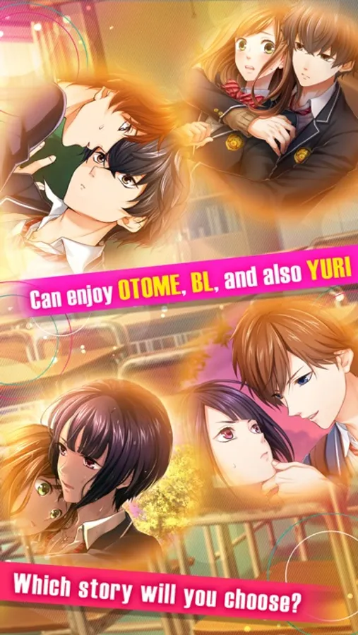 Advancing is easy. Simply by tapping the screen, you can advance the game, and choose your favorite type of story (Otome, BL, or GL). By the choices you make during the story, you can obtain beautiful stills, and enjoy sweeter developments. This game is free to download and can be enjoyed with no charge. However, an internet-connected device is necessary to play.