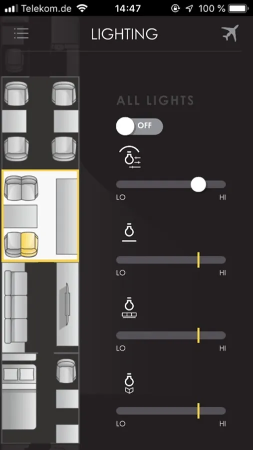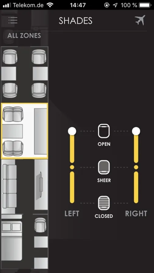 Global 7500 Cabin Control app. Powered by Lufthansa Technik for