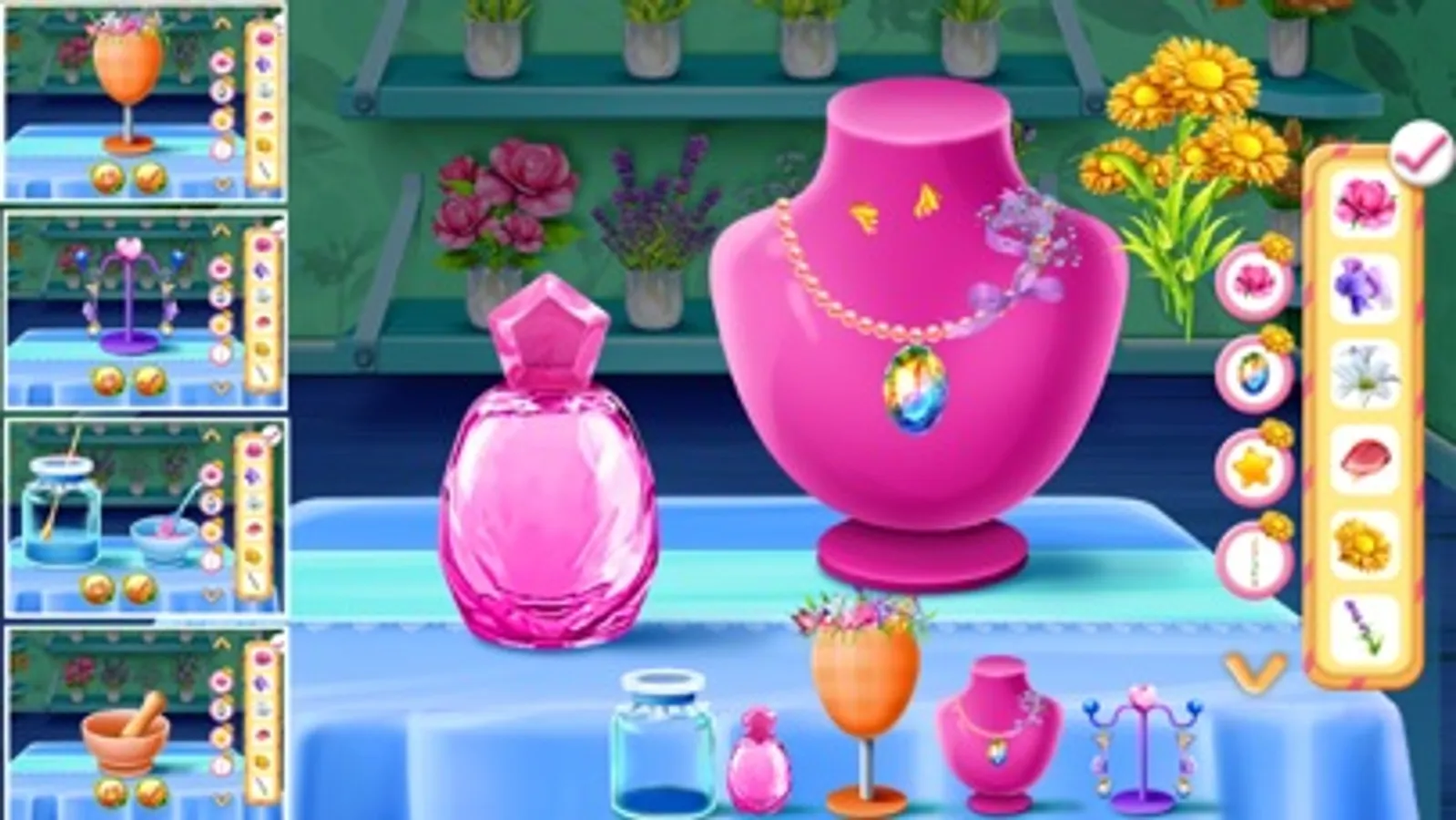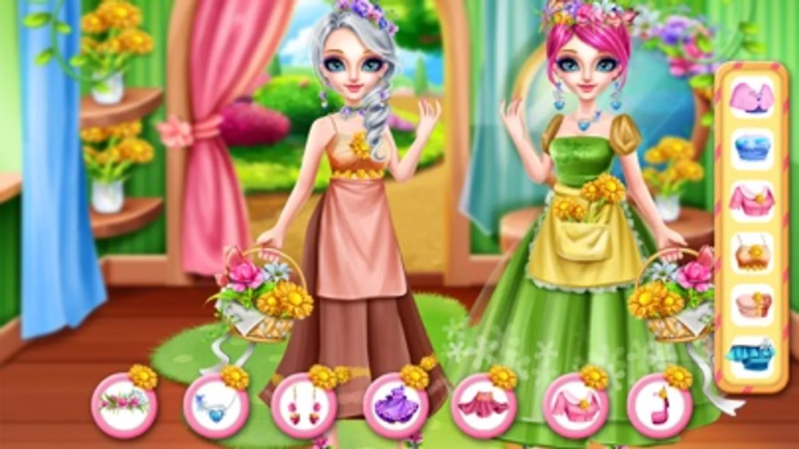 The girls, I heard that the town came up with a florist who is very good at planting flowers. She has a magical garden where any flower can flourish and bloom. All the flowers in the castle are picked from here. She also makes a variety of bouquets, flower perfume and accessories which are very popular and become a popular fashion element pursued by all girls. She is now the image spokesperson of the town.let us help her dress up and make her as beautiful as a flower fairy. You can also learn from the florist to grow the seeds into beautiful flowers, and then make your favorite ornaments in her flower shop.