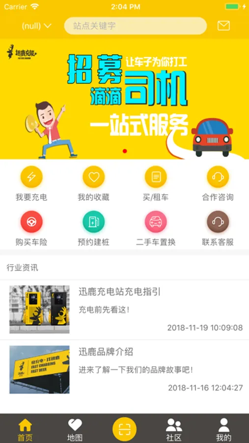 通过整合充电站与充电桩的数据资源,为APP用户(电动车为主)提供出行规划、充电、支付、站点信息纠错等服务,帮组用户寻找最适合的充电地点和完成充电工作。