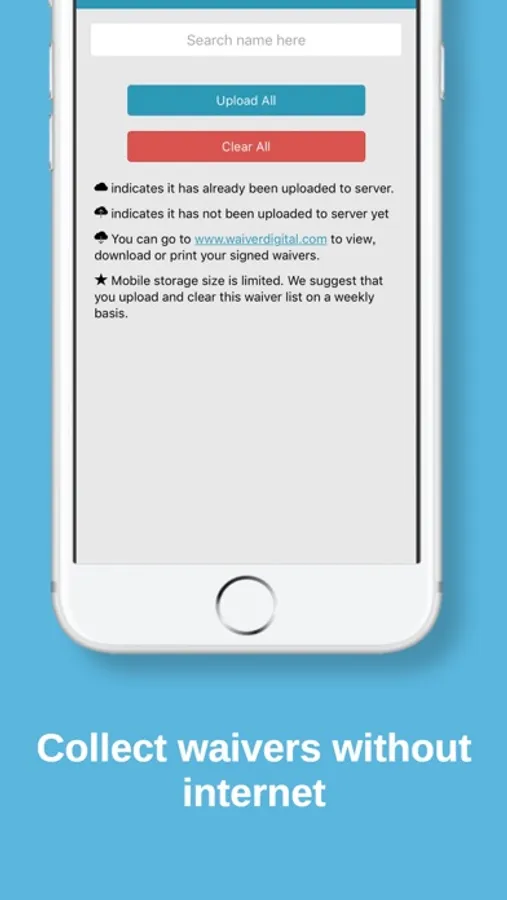 - Offline mode. Turn on the airplane mode on your device and start to collect waivers without internet.