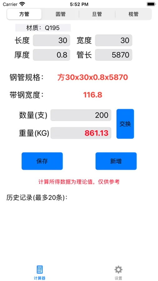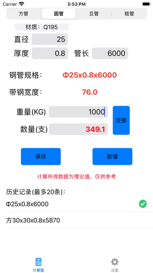 使用本软件可方便使用钢管的五金行业计算材料成本。