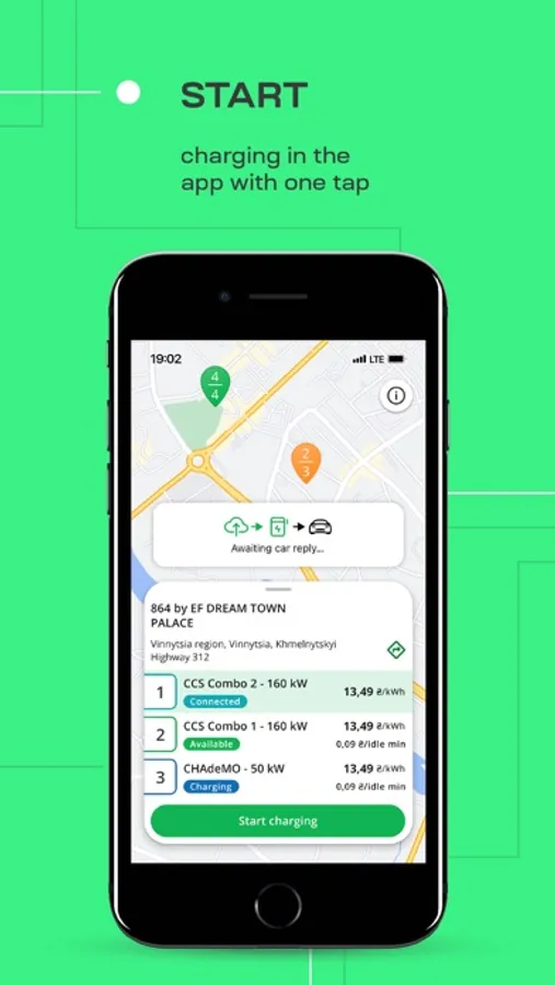 1. Find the nearest EV charging station by speed (7 kW, 9 kW, 22 kW, 50 kW) and connector type (ССS 1, CCS2, Type 1, Type 2 Plug, Type 2 Socket, CHAdeMO, GB/T DC, GB/T AC).