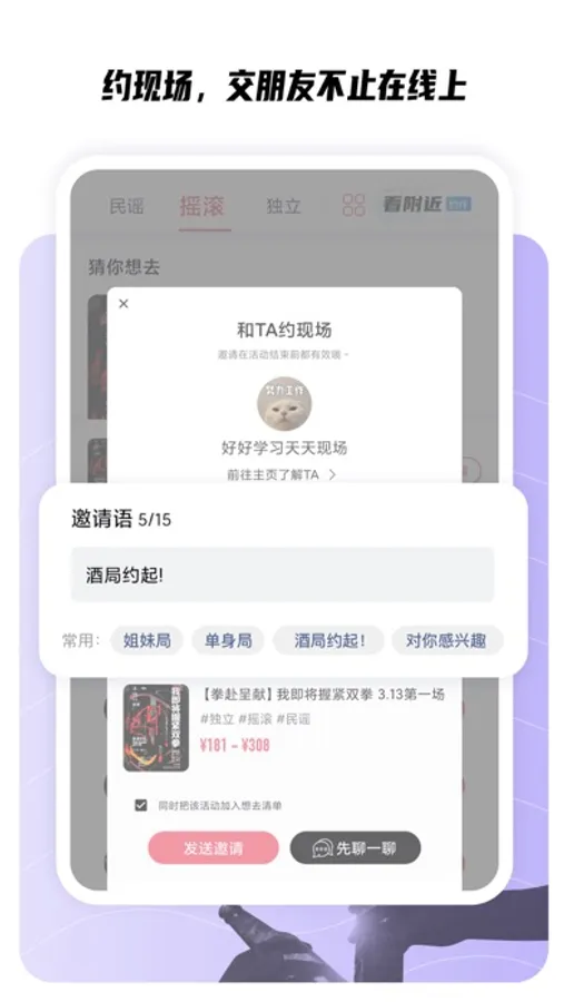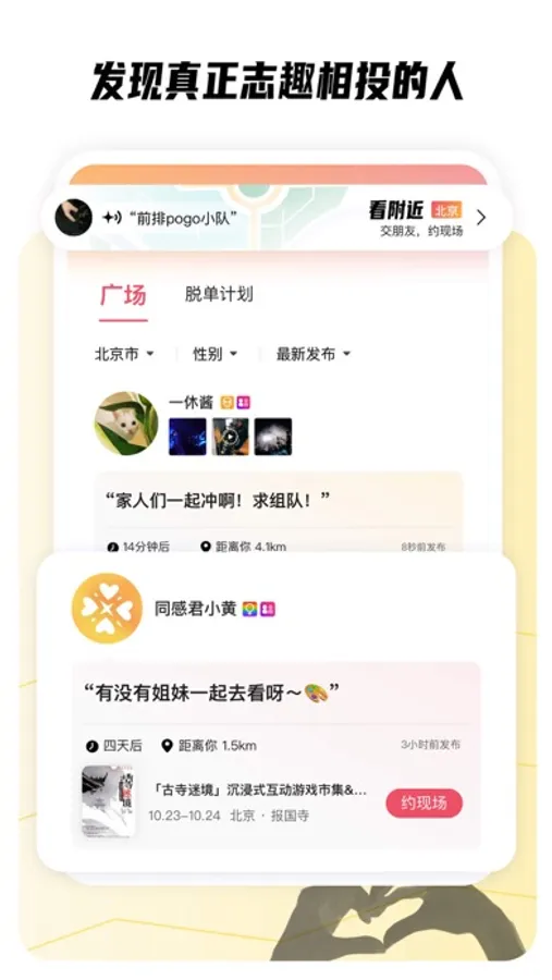 • 约现场,不尬聊,发现生活中本应该认识的小伙伴,找到适合自己的深度兴趣圈子