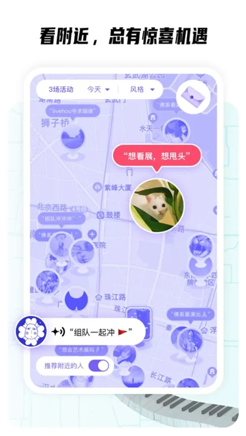 • 丰富的兴趣场景:音乐、市集、派对、运动… 太多好玩的事,等你来发掘