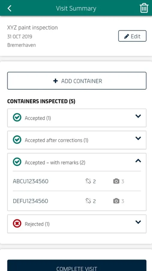 - Inspect and rate large amounts of containers in individual, structured visits.