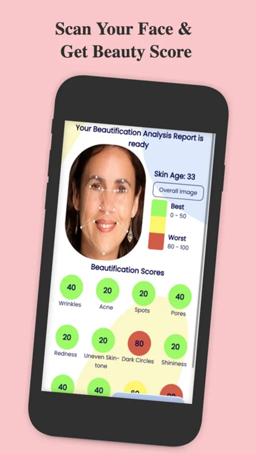 The app scans your face to determine 20+ skin issues and opportunities,