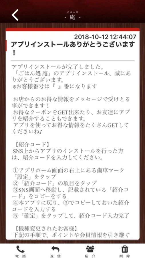 庵のアプリをSNSを通じてお友達に紹介する事ができます。