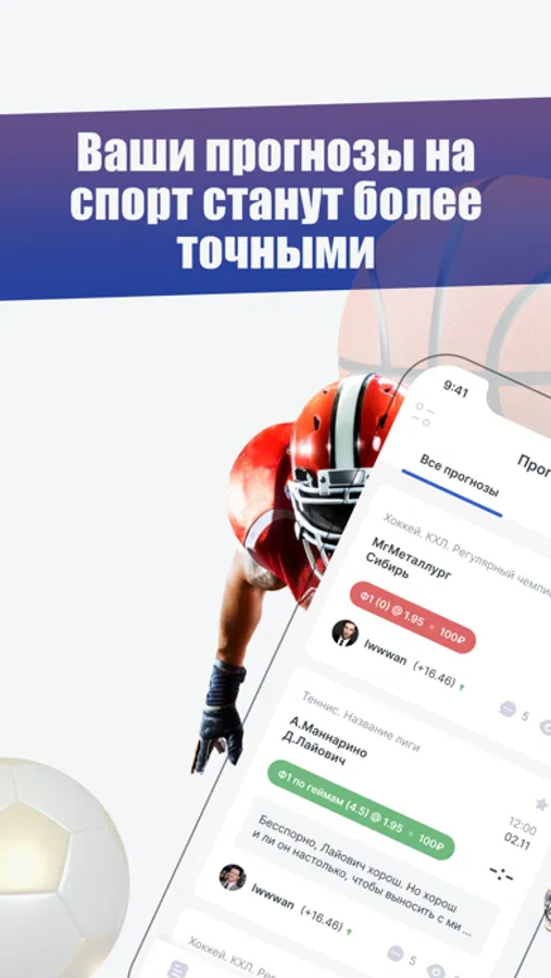 Подписывайтесь и получайте Push уведомления о новых прогнозах от лучших прогнозистов. Обсуждайте с ними ставки на спорт через личные сообщения. Анализируйте свои прогнозы с помощью наших уникальных сервисов, а также смотрите онлайн результаты LIVE к матчам в прямом эфире. В приложении нет рекламы, оно бесплатное и сделано для людей. Мы потратили на приложение много сил и времени - оцените его по достоинству на все 5 звезд!