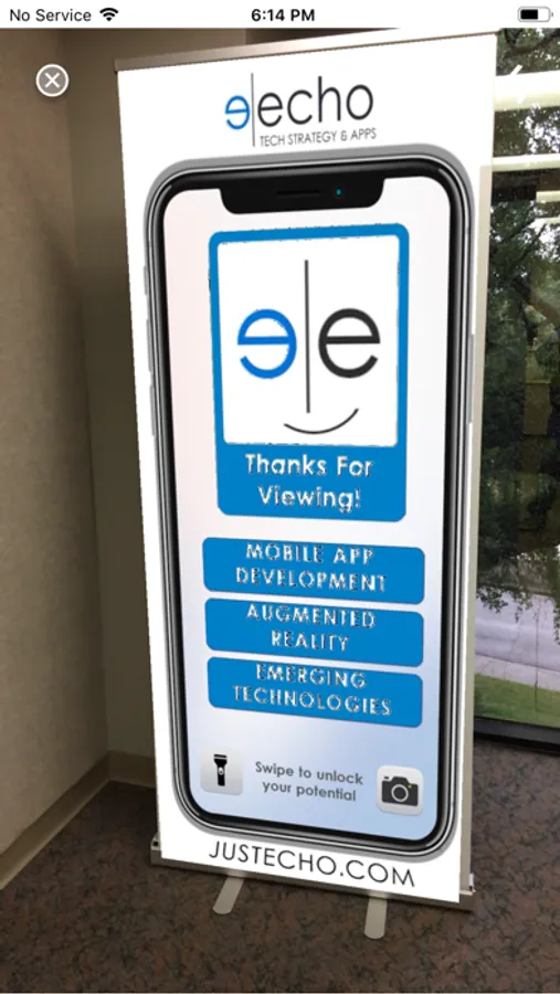 Echo clients can now experience printed materials, direct mail pieces, tradeshow displays and other items using Augmented Reality features. By scanning a QR code found in these items, or by pointing the device camera to an Echo AR enhanced object using this app, the user will be able to experience critical information about some of our clients. We will add more experiences every week so be sure to turn on push notifications!