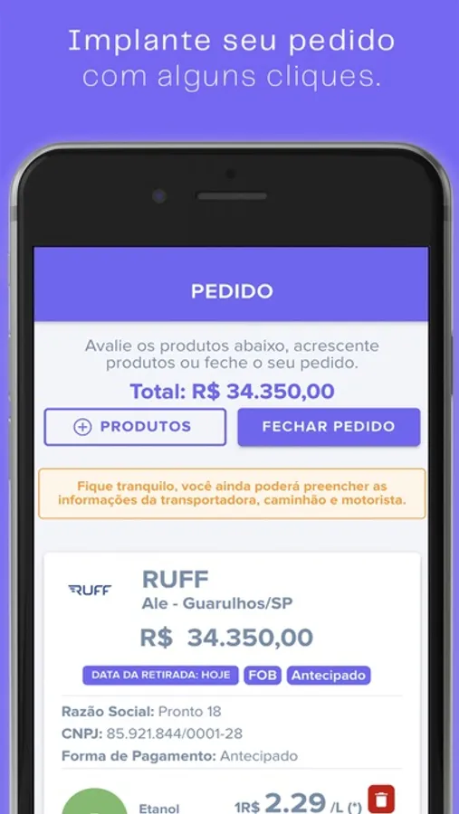 PRONTO é o primeiro e maior aplicativo do Brasil para Cotação, Compra e Entrega de Combustíveis para postos bandeira branca.