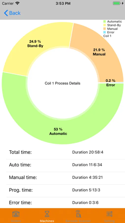 Il terzo modulo permette di usare il vostro la camera del vostro dispositivo Iphone come uno scanner per codici a barre, con cui identificare le etichette in produzione nel vostro stabilimento ed avere in tempo reale le informazioni su cliente, commessa, pezzi prodotti, ecc.
